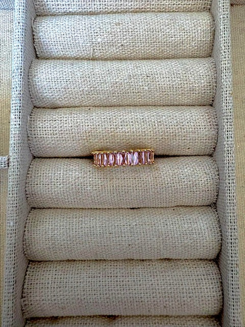 La bague « Aluna » capture la douceur d’un coucher de soleil tropical. Sa couronne dorée est sertie de délicats cristaux roses, comme des perles de rosée cristallisées à l’aube. Féminine et lumineuse, elle évoque la fragilité poétique des fleurs exotiques et la sensualité d’un été infini.