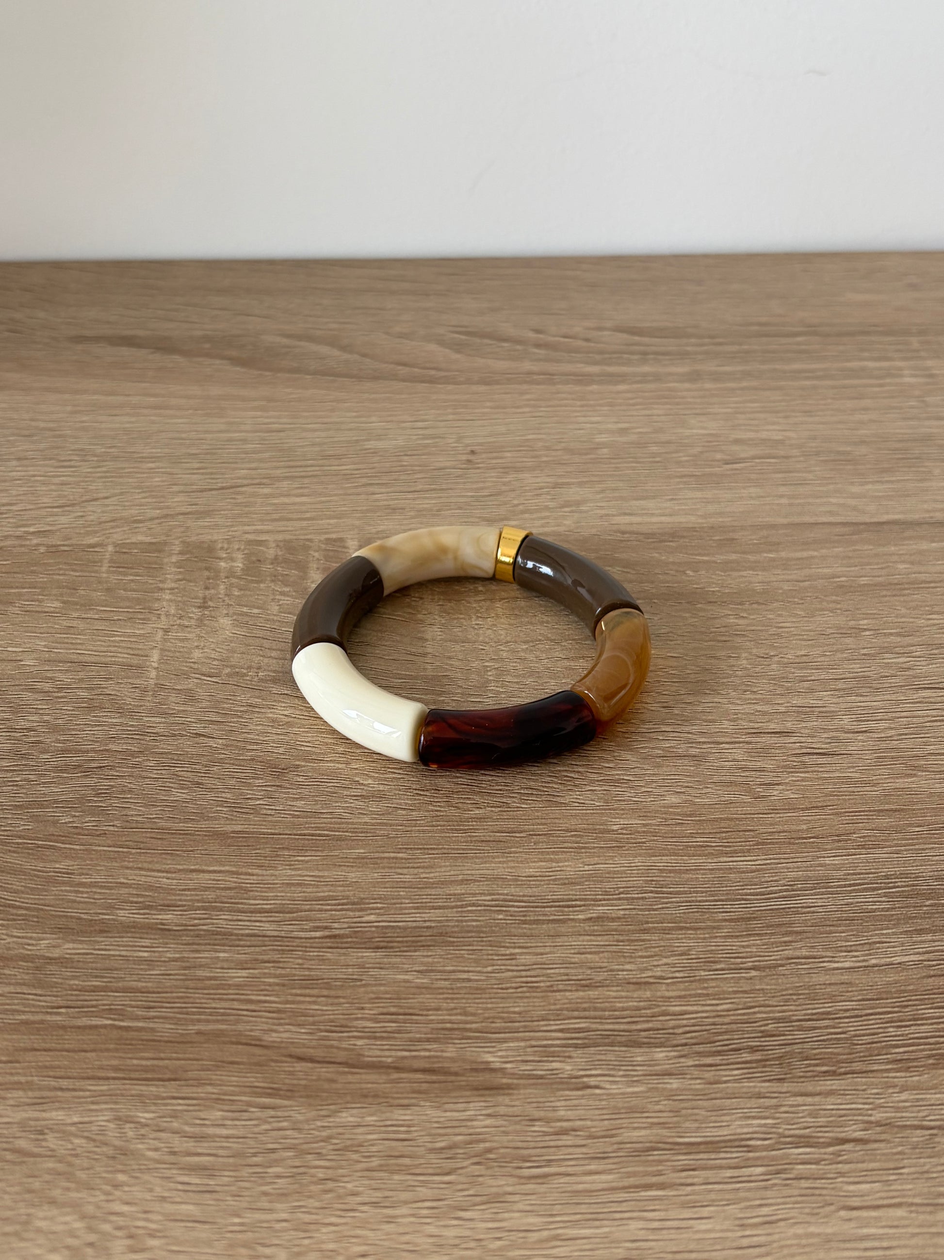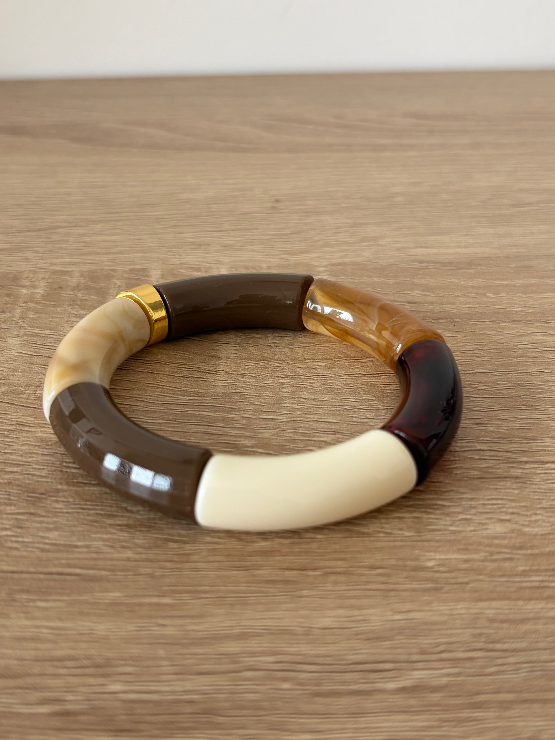 Chaleureux, naturel et plein de caractère, le bracelet "Terra Lumen" mêle les nuances organiques du bambou dans une harmonie unique de tons ambrés, bruns et ivoire.