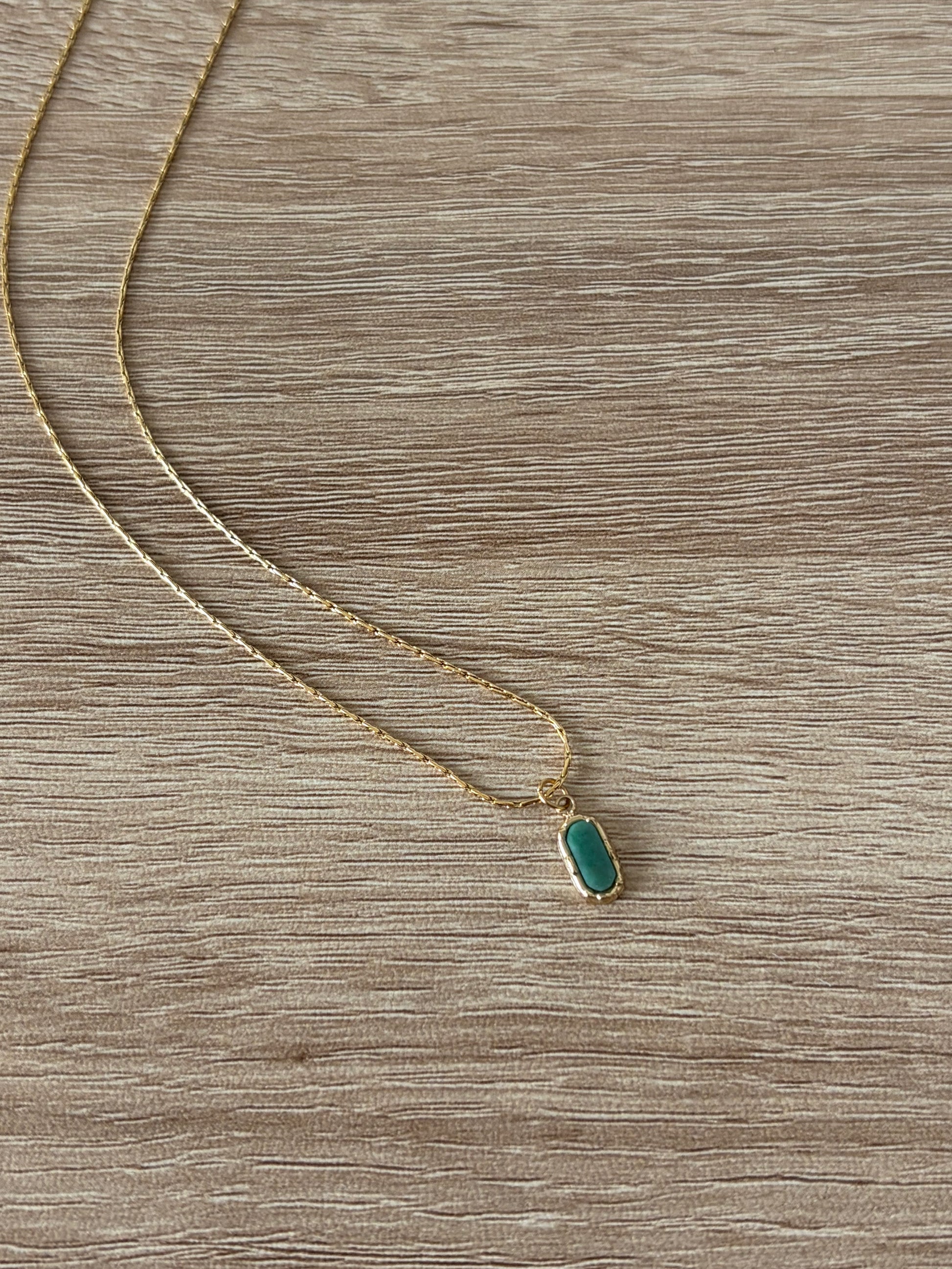Élégant et lumineux, le collier VERDIA combine la chaleur du métal doré avec la pureté d’un pendentif en pierre naturelle verte.